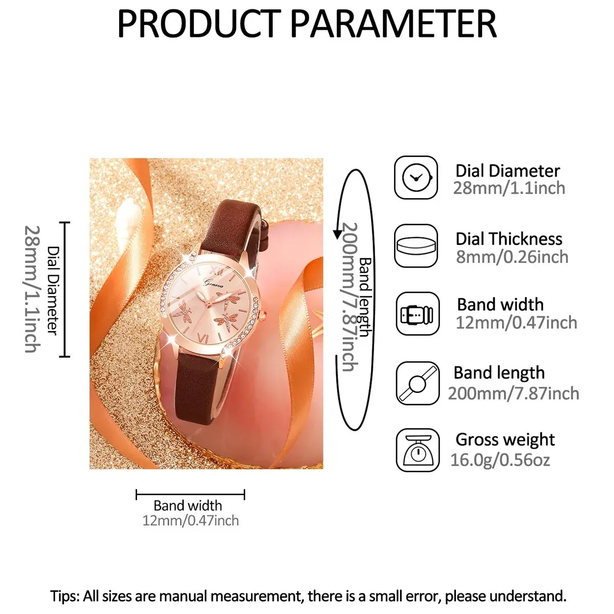 - Use o conjunto com um vestido preto justo ao corpo e salto alto. As pulseiras e o relógio adicionam um toque de brilho sutil para um visual deslumbrante.