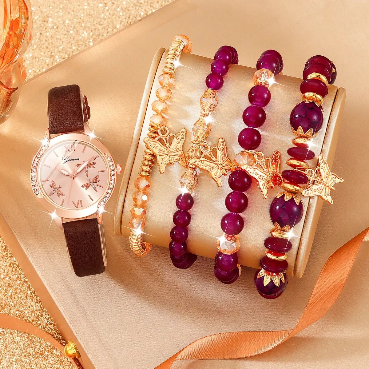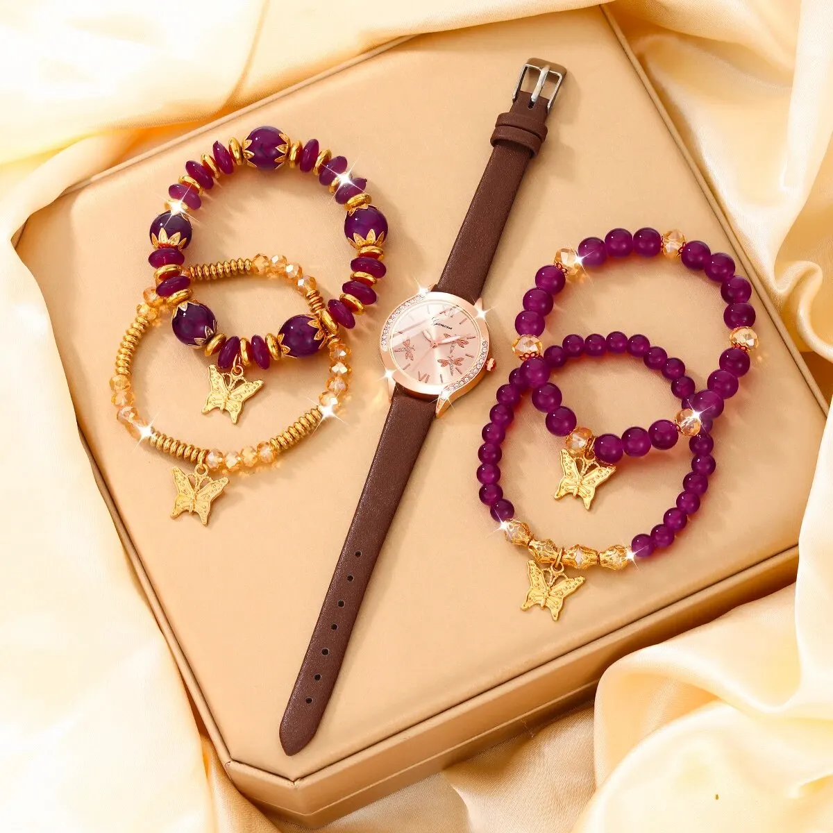 🌟✨ Combinações Encantadoras com Relógio Dourado e Pulseiras de Borboleta! ✨🌟