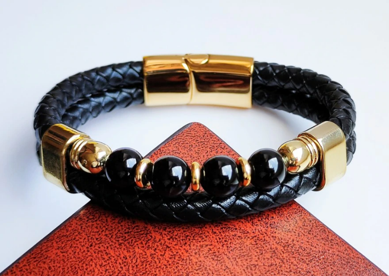 Pulseira de Couro Unissex de Pedras