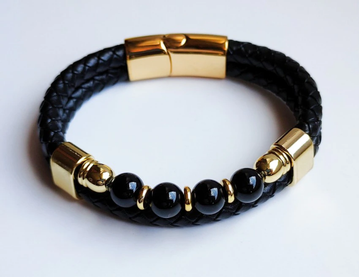 Pulseira de couro unissex de pedras